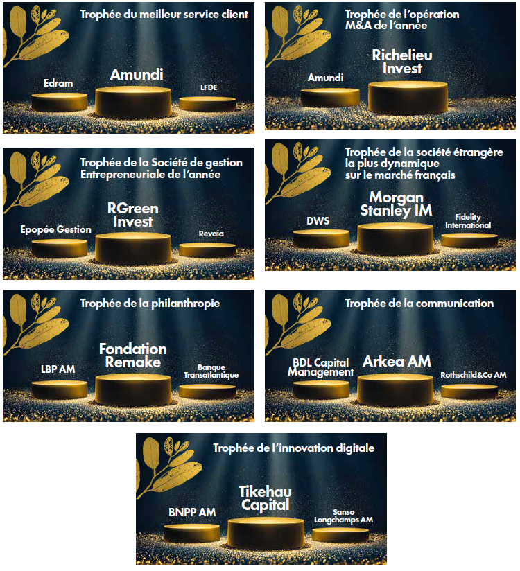 Trois jurys différents ont examiné près de 70 candidatures pour déterminer les lauréats. Pour cette édition, les dossiers ont été nombreux pour les prix du service client, de la société de gestion étrangère la plus dynamique sur le marché français, de la communication et de l’innovation digitale.