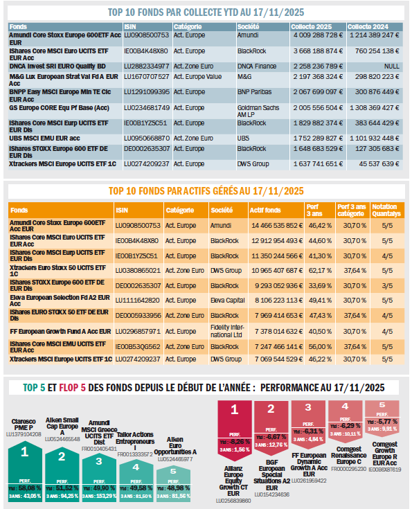 « Les fonds actions Europe constituent une brique essentielle pour les investisseurs souhaitant capter le potentiel de création de valeur des entreprises européennes. La diversité des styles disponibles (value, growth, grandes ou petites capitalisations, zone euro ou Europe élargie) permet d’ajuster finement le profil rendement/risque des portefeuilles, qu’ils soient orientés vers la performance ou davantage vers la prudence », conclut Rui Fidalgo.