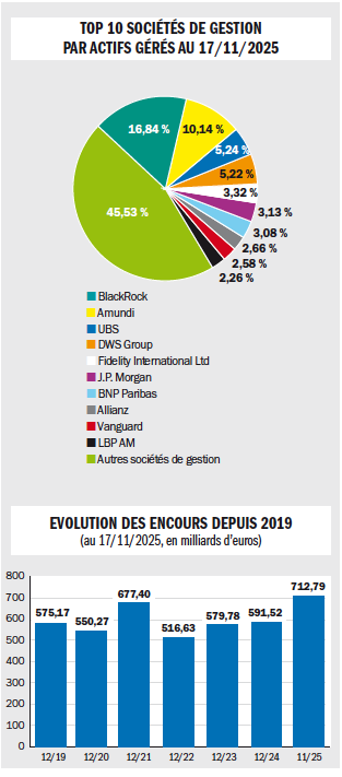 Le marché des fonds actions Europe se distingue par son intensité concurrentielle, avec 612 sociétés de gestion actives sur cette thématique et 1 909 fonds référencés. Les encours atteignent 713 Md€ en 2025, contre 575 Md€ en 2018, témoignant du rôle central des actions européennes dans les allocations des investisseurs.