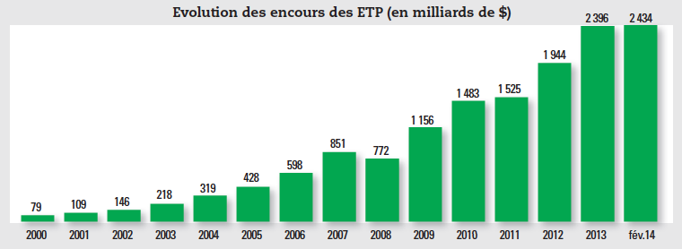 Le marché des fonds et des produits indiciels cotés a, à lui seul, progressé de plus de 20 % en 2013 pour dépasser 2 400 milliards de dollars d’encours dans le monde en fin d’année dernière. Ceux-ci constituent seulement moins d’un tiers de l’ensemble de la gestion passive, qui rassemble également la gestion indicielle sous mandat, elle aussi très dynamique, les investisseurs institutionnels continuant d’accroître la part de la gestion passive au sein de leur allocation pour bénéficier de la performance des marchés à un coût réduit. Depuis le début de la crise, la gestion passive séduit les investisseurs. Elle les a d’abord conquis grâce à ses faibles coûts de gestion. Les gestionnaires qui proposent une gestion passive ont en effet mis en place des outils leur permettant de réduire considérablement les coûts. Outre cet argument, la gestion passive se caractérise par une plus grande lisibilité dans les performances. De plus, les investisseurs ont pu, ces dernières années, être agréablement surpris par la bonne performance de la gestion passive par rapport à la gestion active.